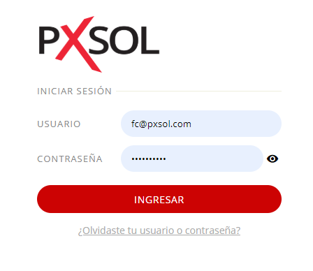 Ingrese al sistema utilizando su nombre de usuario y contraseña en el siguiente enlace: https://pms.pxsol.com/