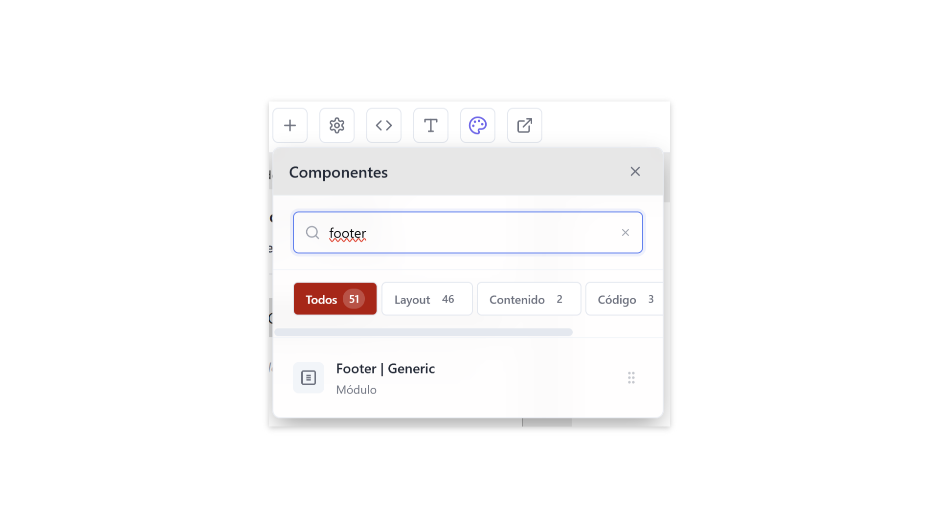 Una vez que ubiques el componente Footer, haz clic sobre él y, sin soltar, arrástralo hacia el área de trabajo central.