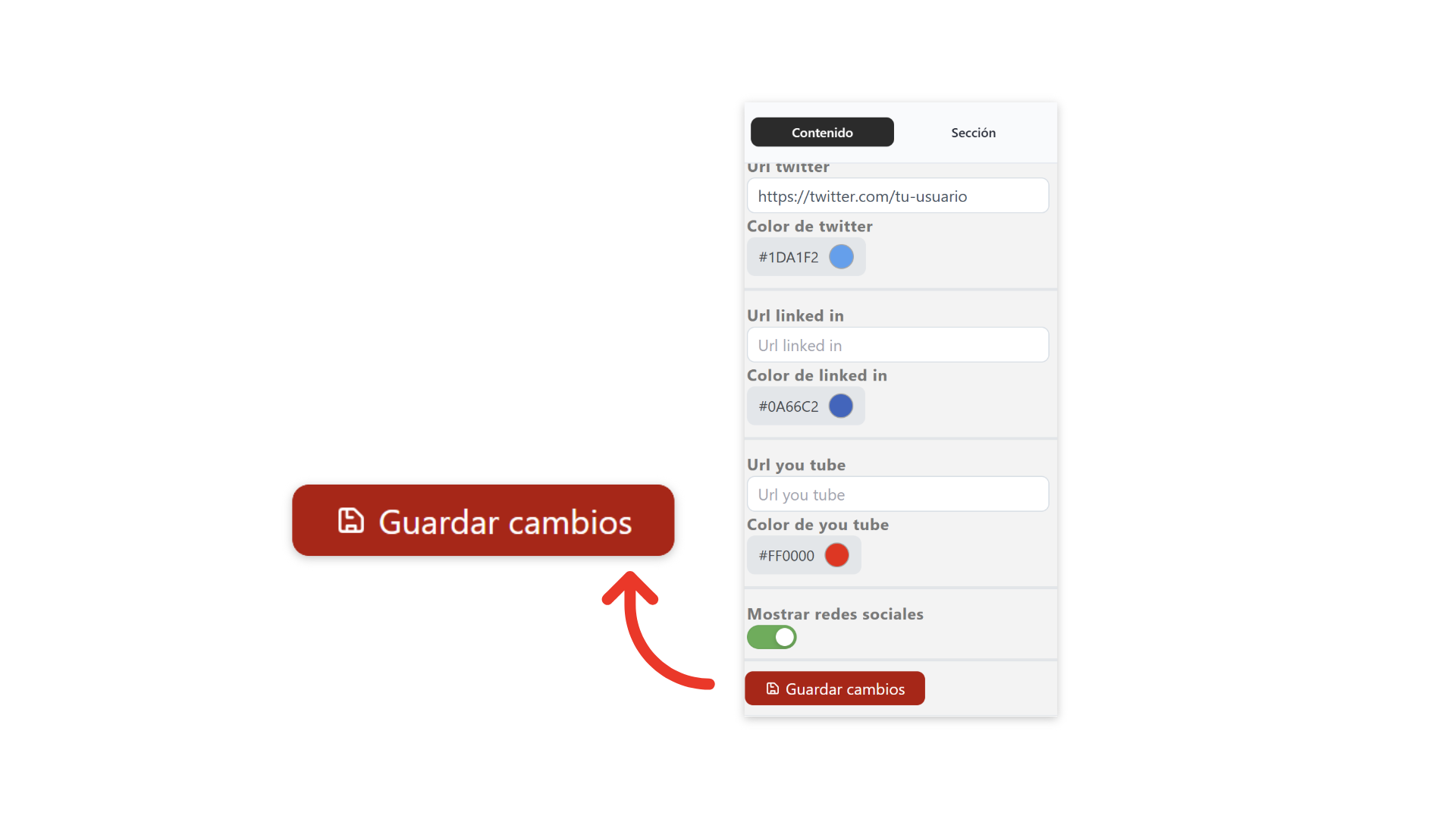 - Mostrar redes sociales: Selector para mostrar u ocultar los íconos sociales.