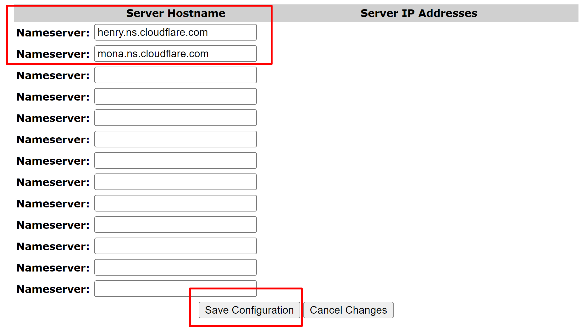 Reemplaza los Name Servers