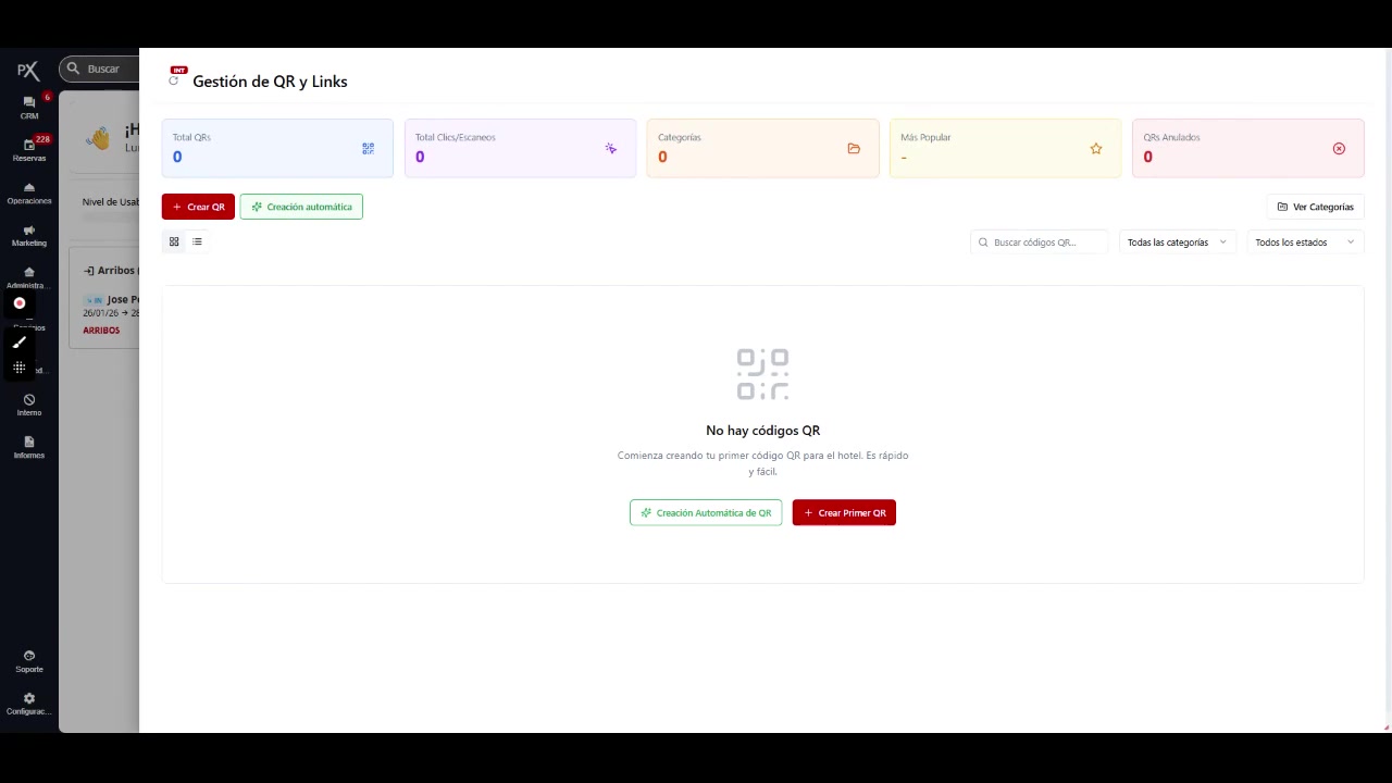 Dentro del submenú de Marketing, selecciona la opción “Gestión de QR y Links”. Esto te llevará al panel principal de administración de códigos QR.