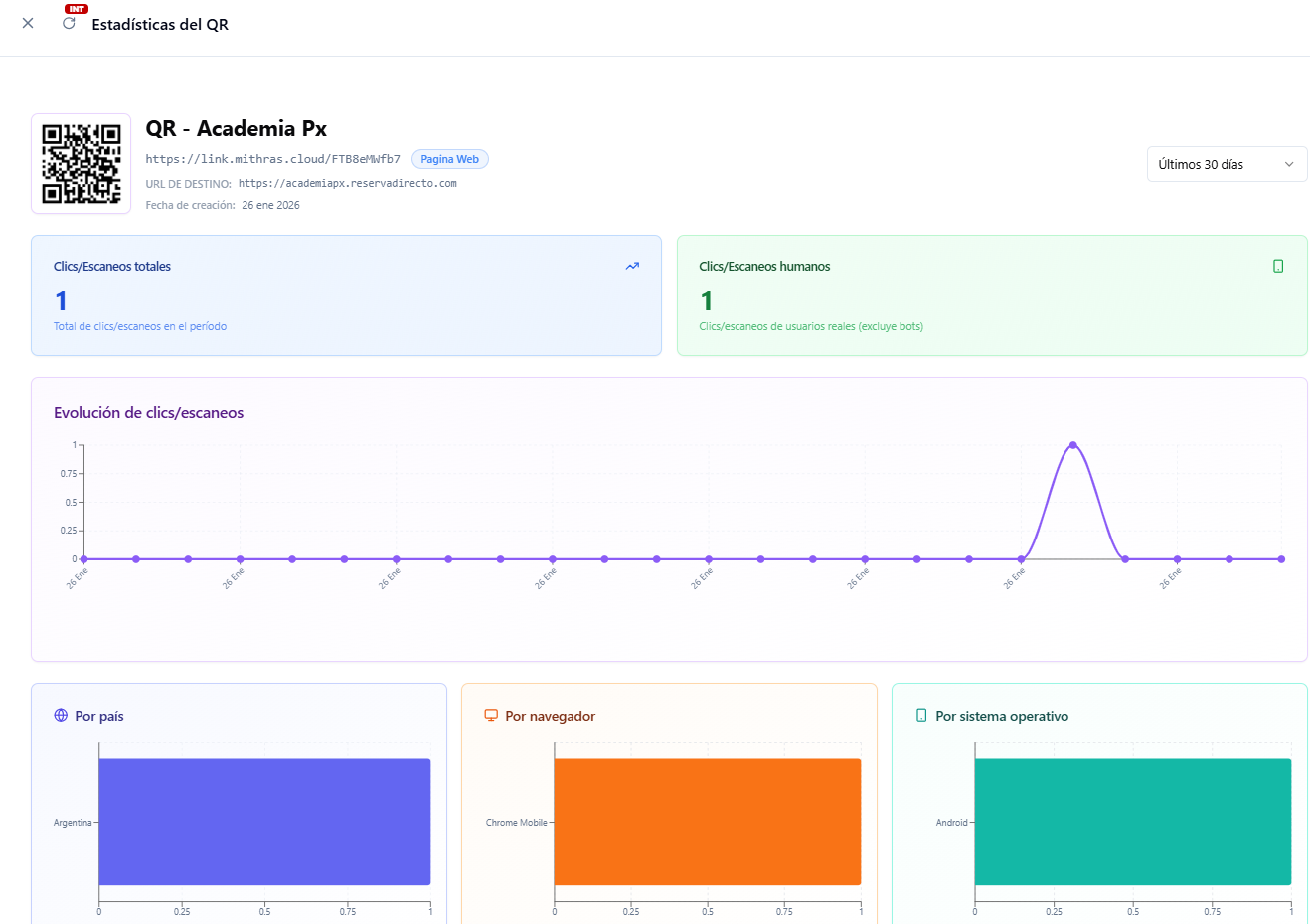 - Total de clics/escaneos acumulados