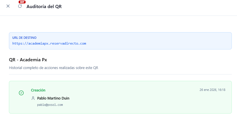 Selecciona “Ver auditoría” para ver un registro completo de todas las acciones realizadas sobre el QR, incluyendo el usuario, la fecha y la hora.