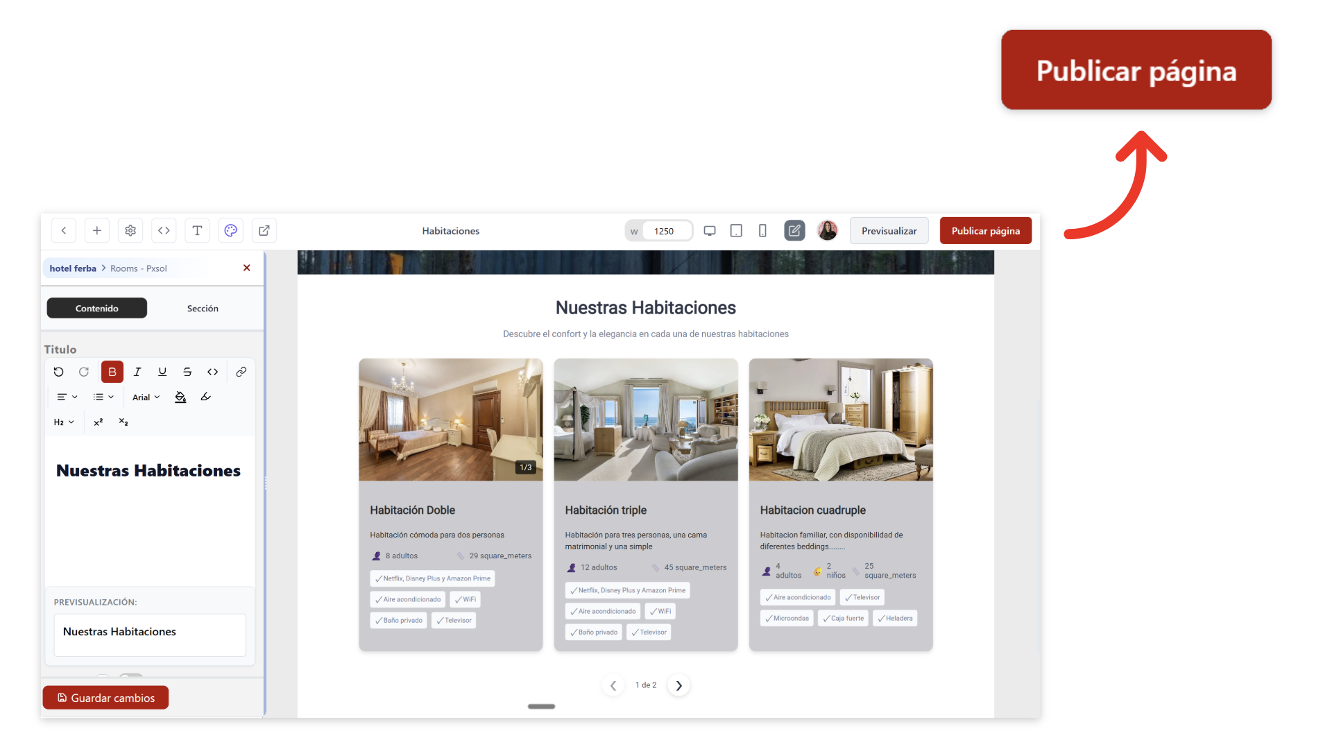 Recuerda hacer clic en Publicar página para que los cambios se reflejen en el sitio público.